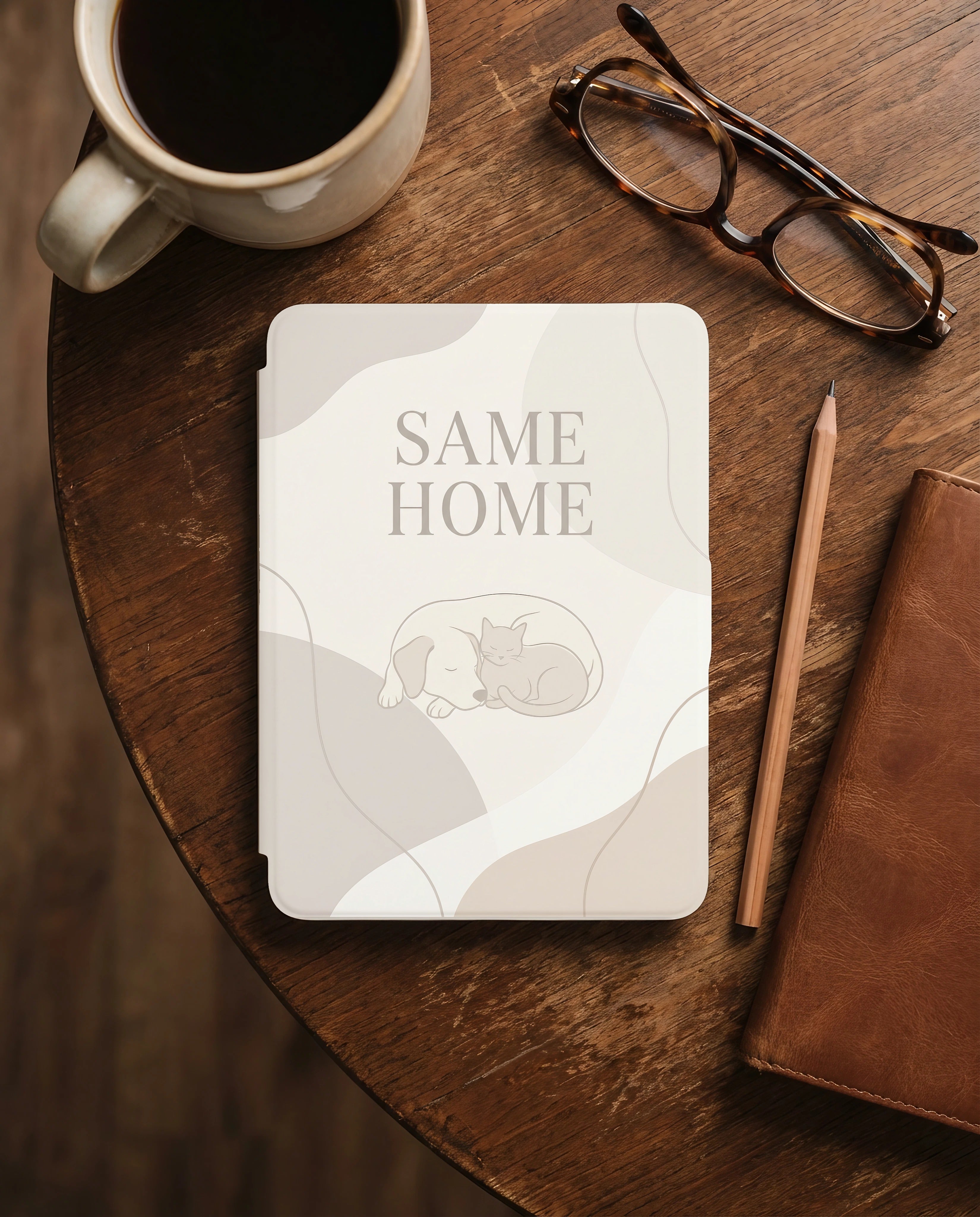 "Same Home" - Custom Dog & Cat Portrait Kindle Case